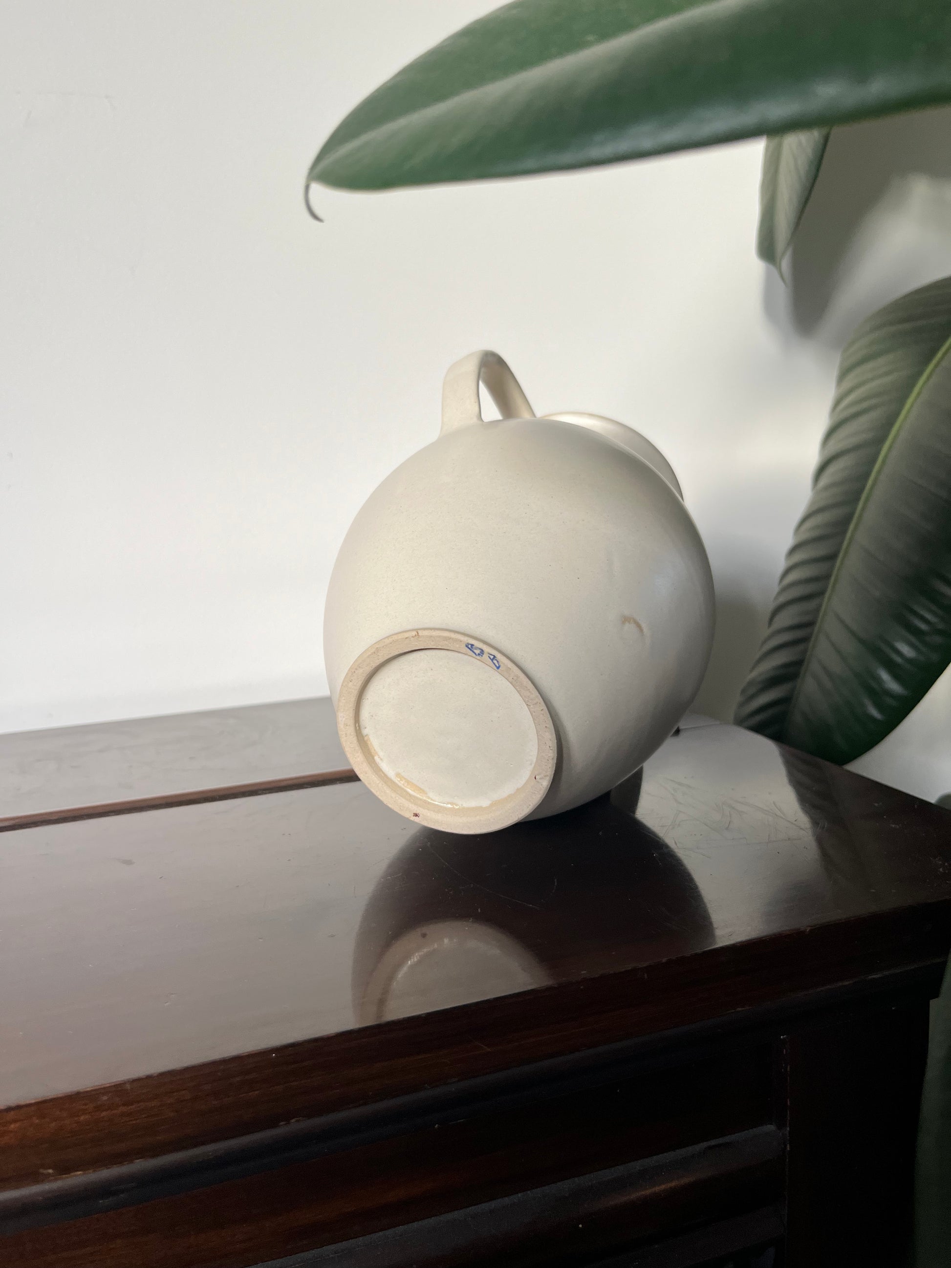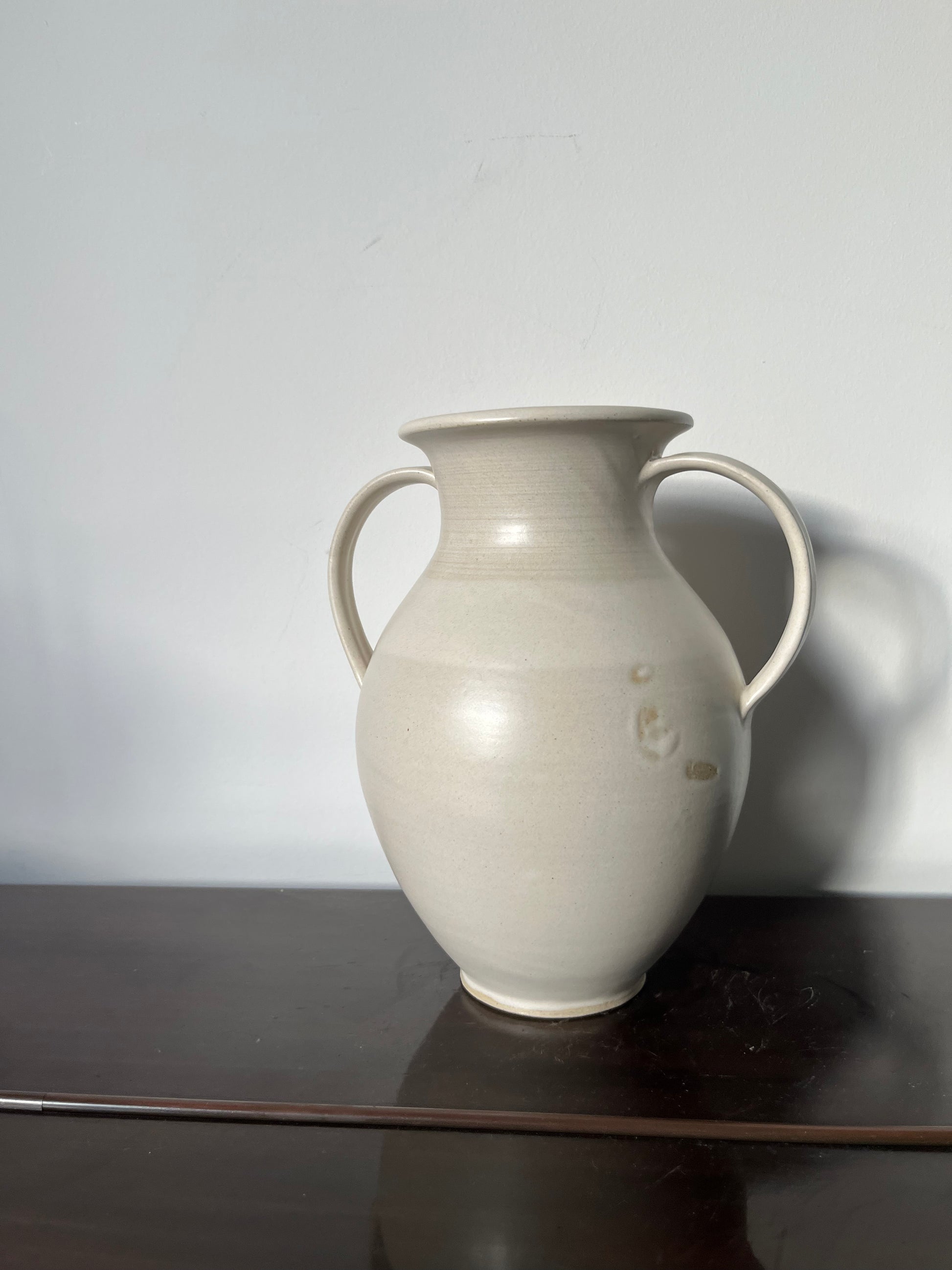 One-off double-handed amphora in satin off-white glaze. Finger marks can be seen from the glazing process
